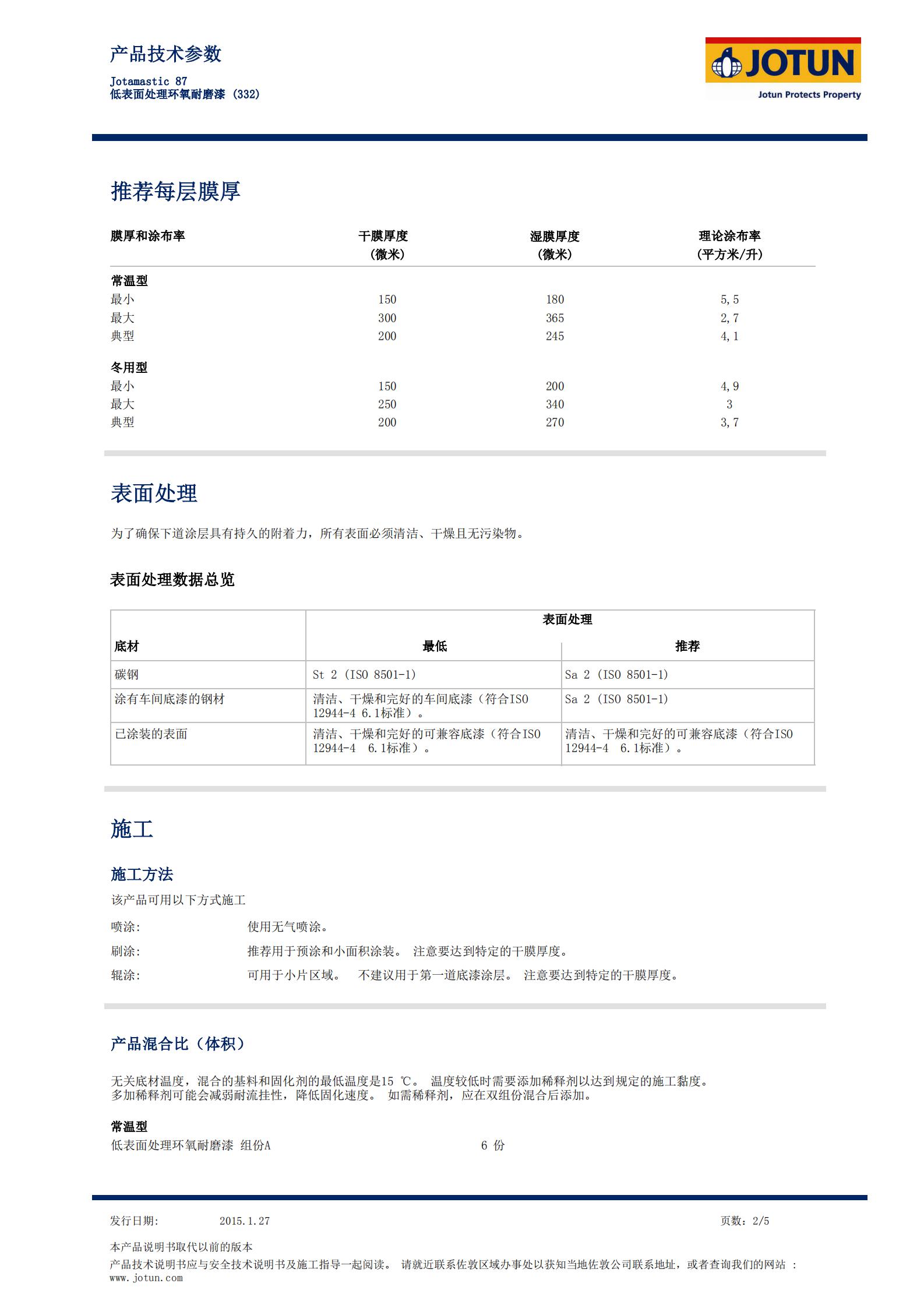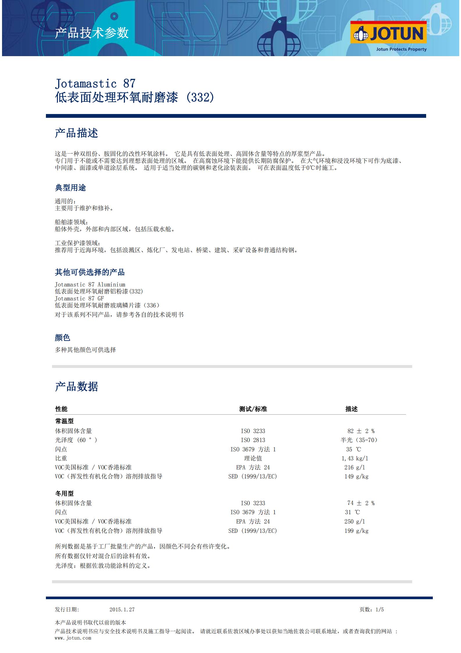 TDS-Jotamastic+87-低表麵處理環氧耐磨漆