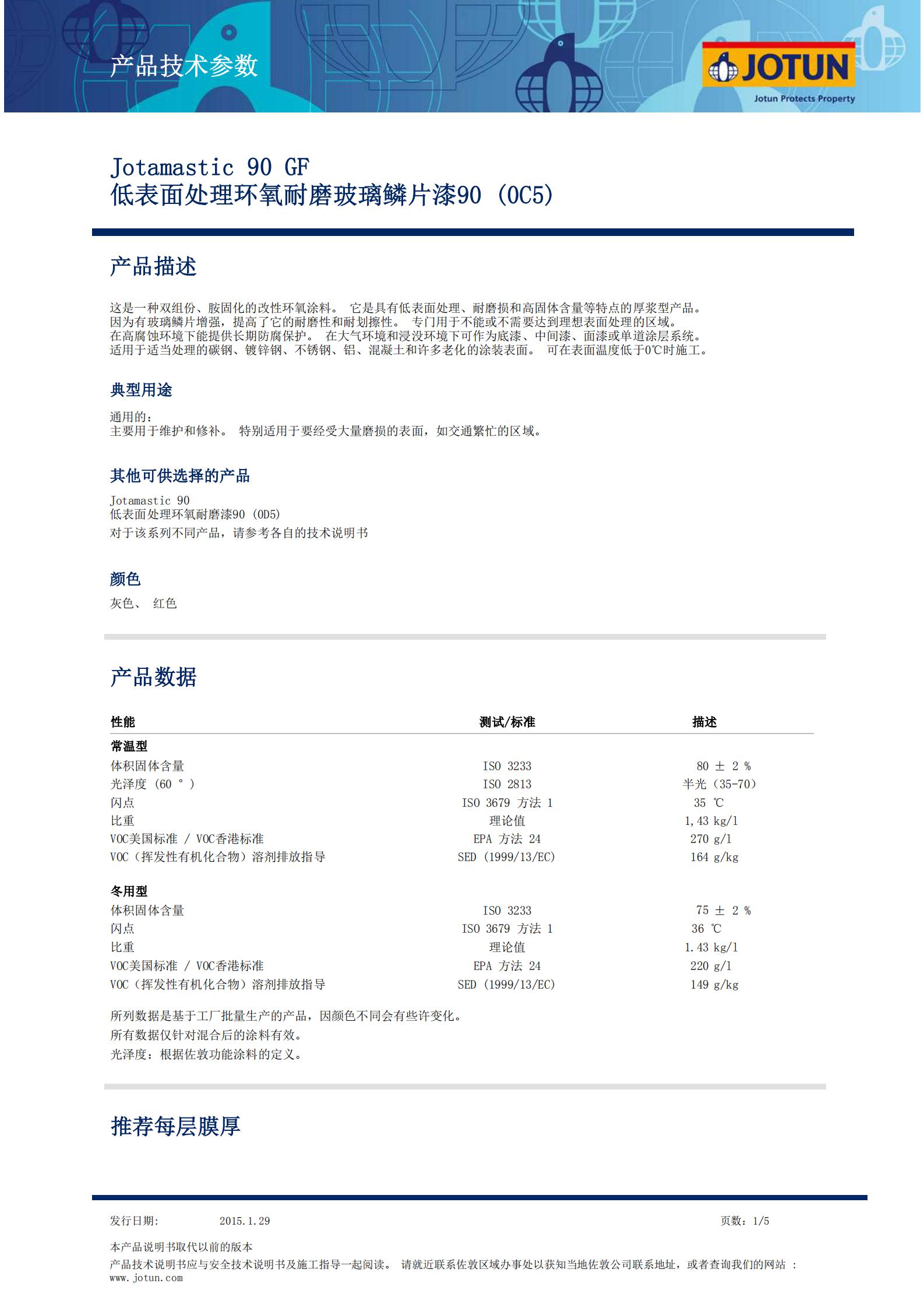 TDS-Jotamastic+90+GF-低表麵處理環氧耐磨玻璃鱗片漆90