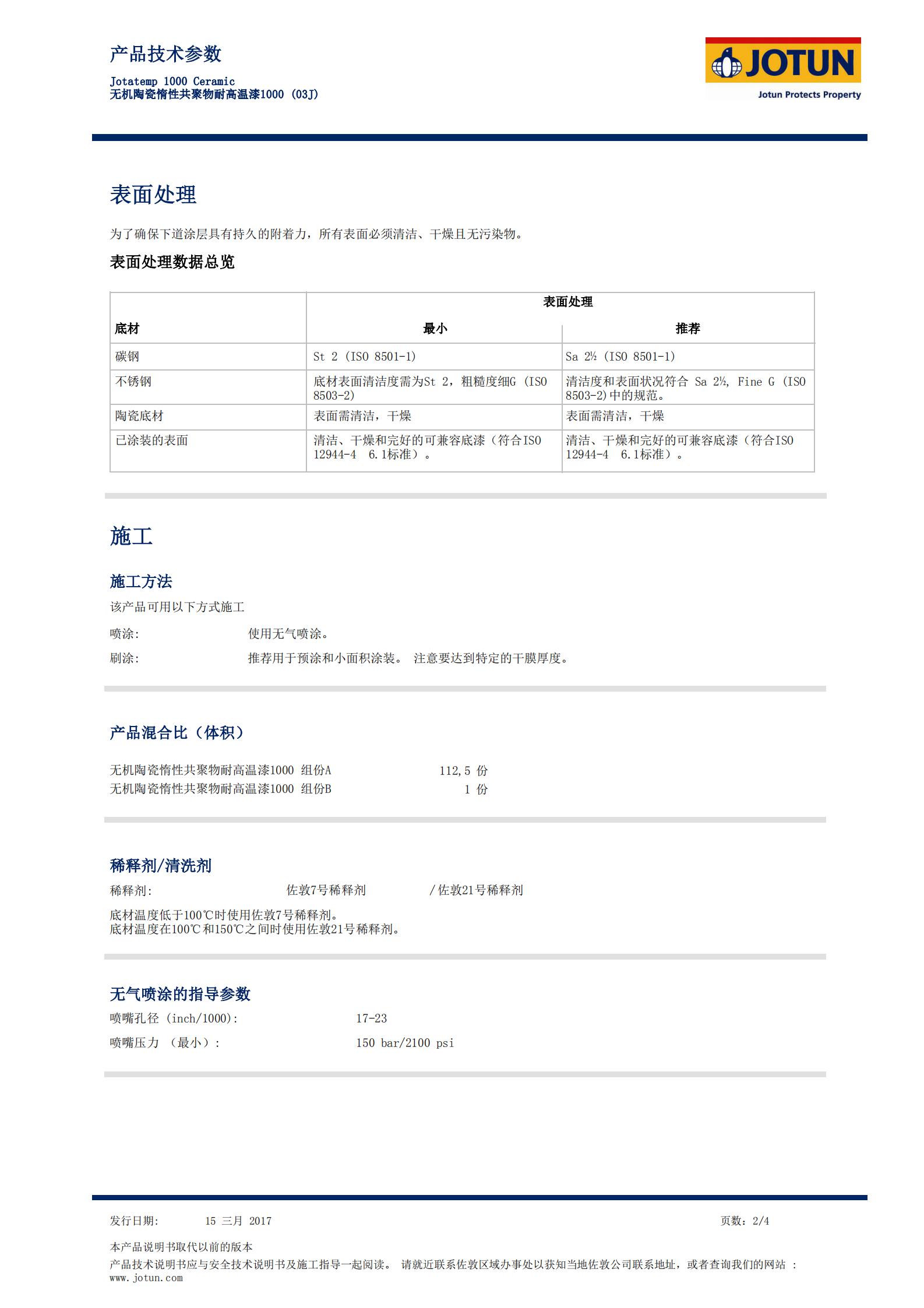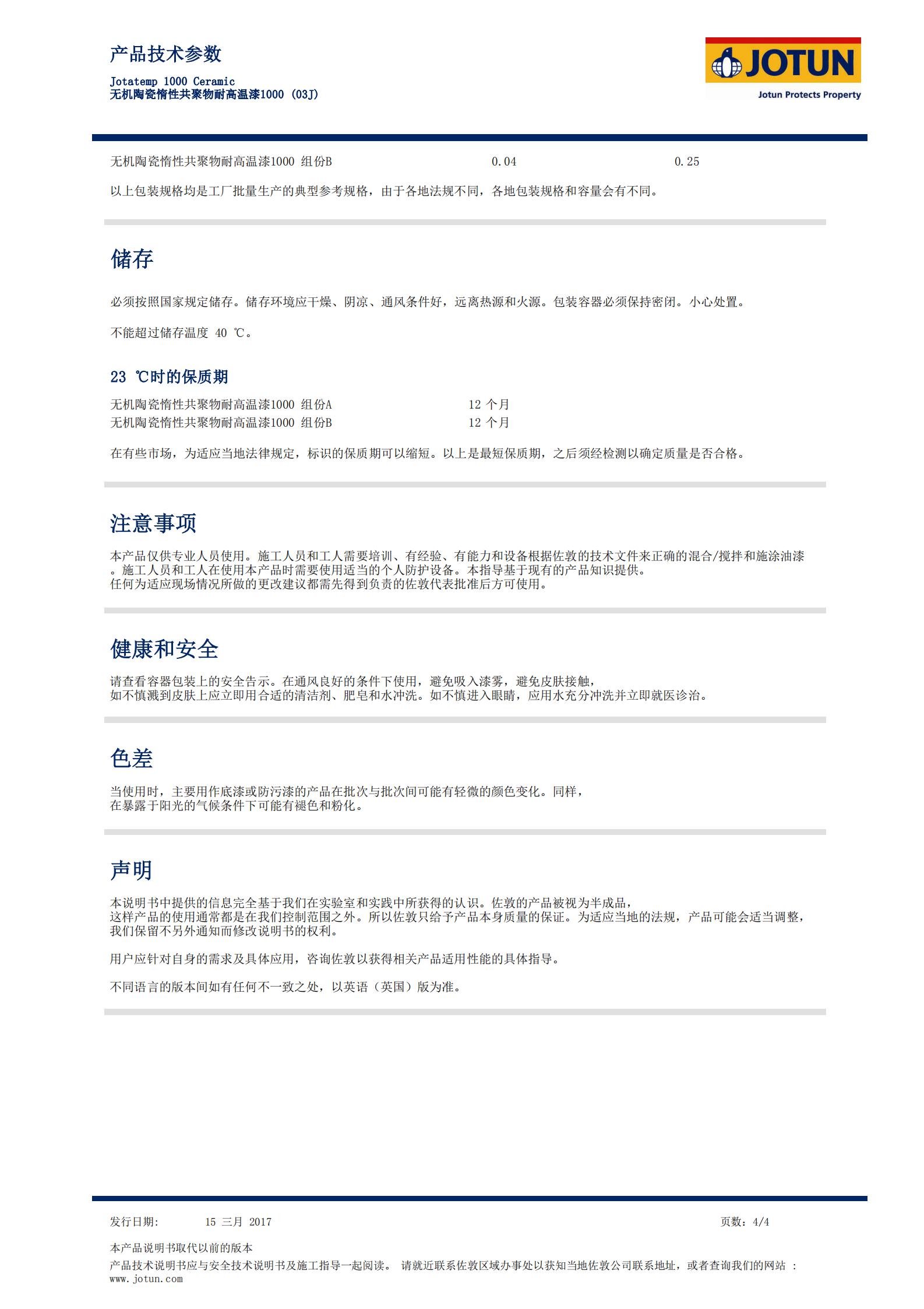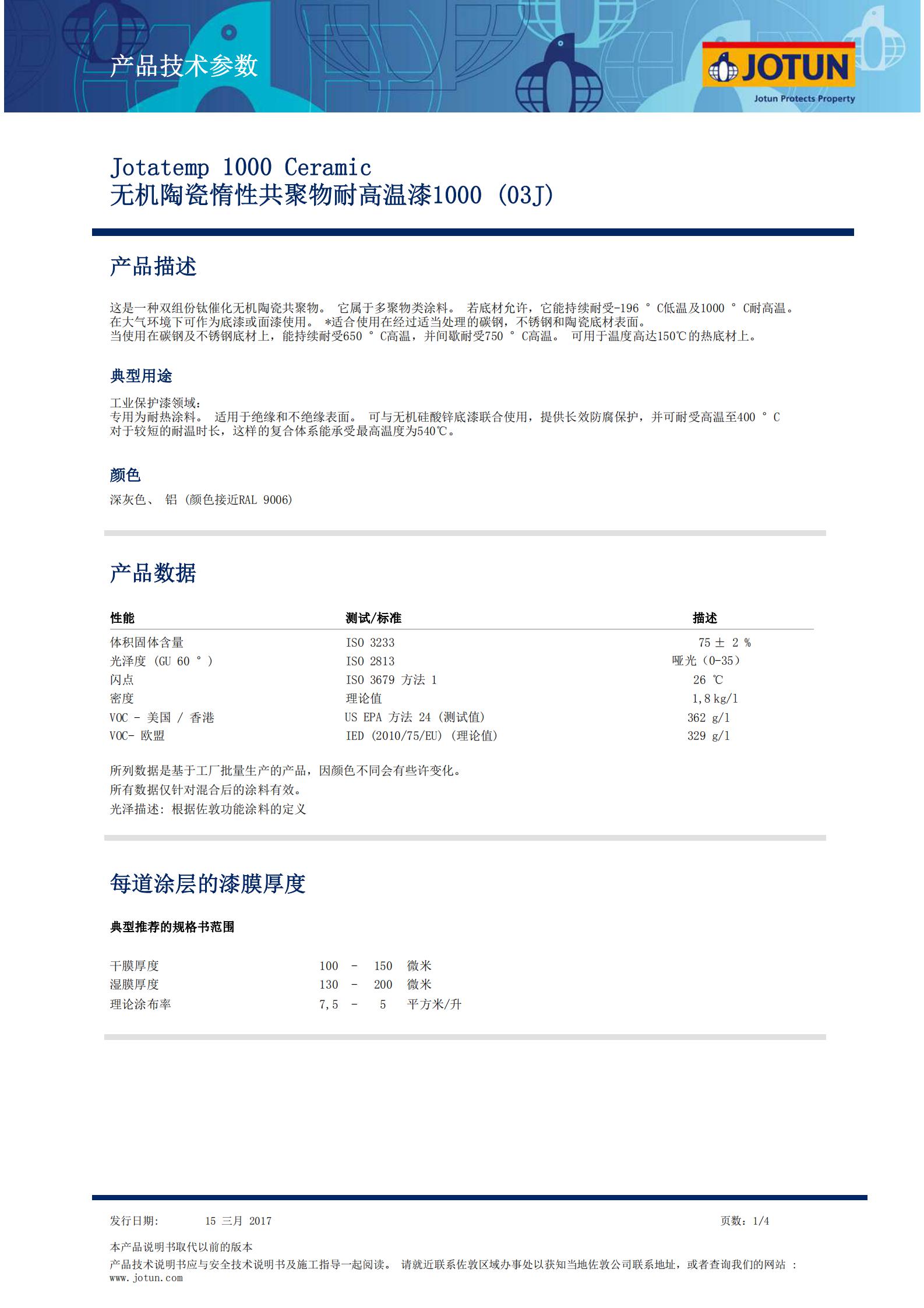 TDS-Jotatemp 1000 Ceramic 無機陶瓷惰性共聚物耐高溫漆1000 (03J)